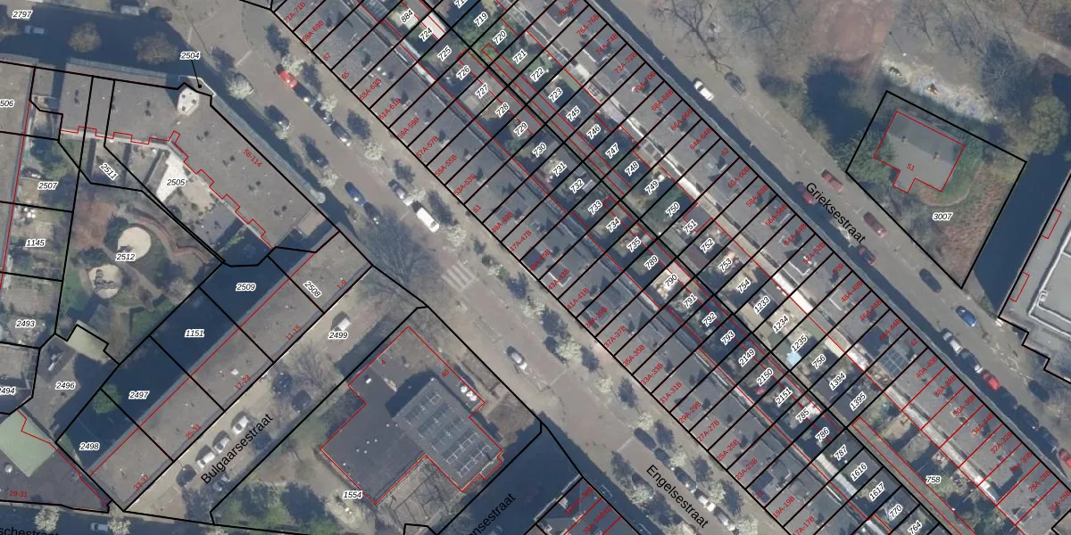 Engelsestraat 45-A is gelegen op kadastraal perceel RTD10AA733. Deze kadastrale aanduiding is uniek en wordt gebruikt door het Kadaster om eigendomsrechten en andere zakelijke rechten vast te leggen. Het perceel maakt onderdeel uit van de kadastrale gemeente Rotterdam.