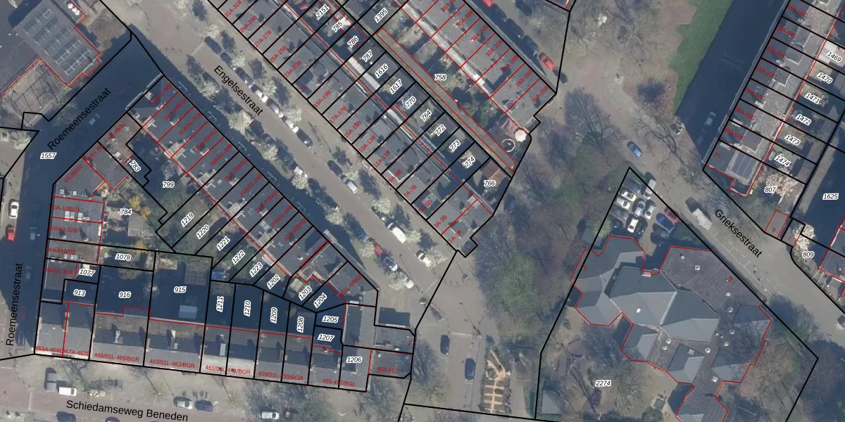 Engelsestraat 5-B is gelegen op kadastraal perceel RTD10AA774. Deze kadastrale aanduiding is uniek en wordt gebruikt door het Kadaster om eigendomsrechten en andere zakelijke rechten vast te leggen. Het perceel maakt onderdeel uit van de kadastrale gemeente Rotterdam.