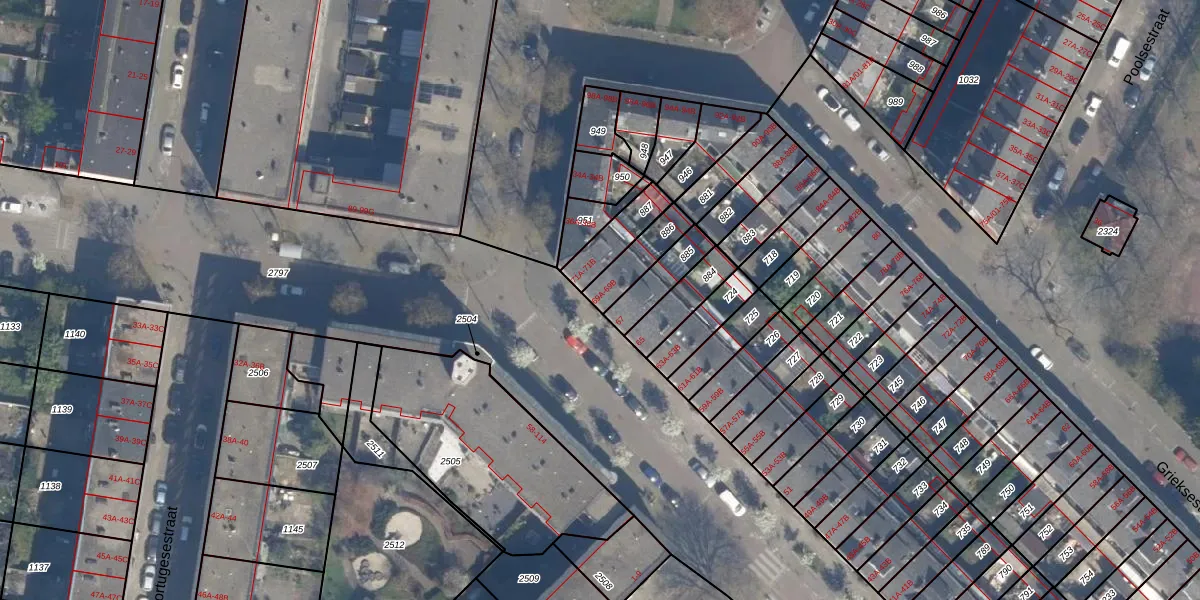 Het adres is gelegen op perceel 886 in de sectie AA en de kadastrale gemeente Rotterdam. De kadastrale aanduiding is aldus RTD10-AA-886. Het perceel is 107 m² groot. Dat is kleiner dan de gemiddelde perceeloppervlakte in Rotterdam, dat op 1602,8 m² ligt. Het kleinste perceel in de kadastrale gemeente is 0 m² groot. De grootste perceeloppervlakte is 30,3 ha. Er zijn 2 adressen aanwezig op het perceel. In de Basisregistratie Kadaster (BRK) werden de grenzen van het perceel geregistreerd op 20-07-2007.