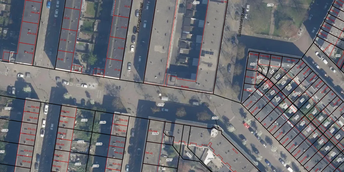Het adres ligt op het perceel RTD10-AA-2793, dat zich in de kadastrale gemeente Rotterdam bevindt. Het perceel is met 4140 m² relatief groot. Het gemiddelde ligt in de kadastrale gemeente Rotterdam op 1601,97 m². De grootste perceeloppervlakte in de kadastrale gemeente is 30,3 ha. De kleinste oppervlakte bedraagt 0 m². Op het perceel liggen in totaal 64 adressen. In de Basisregistratie Kadaster (BRK) werden de grenzen van het perceel geregistreerd op 20-07-2007.