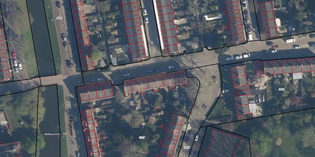 Het perceel waarop Enk 108 staat heeft een oppervlakte van 5030 m². Dit is een zeer groot perceel. De perceeloppervlakte wordt geregistreerd door het Kadaster. Gedetailleerde informatie over de maten van dit perceel kunt u vinden in het rapport Kadastrale kaart met maatvoering van Enk 108.