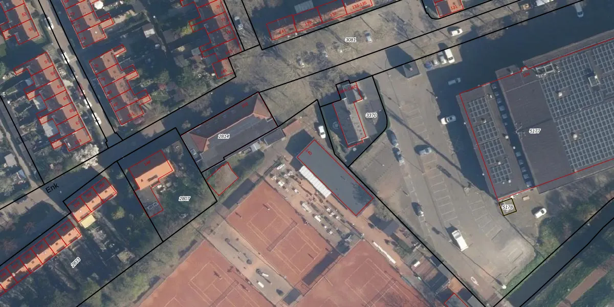 Het perceel waarop Enk 140 staat heeft een oppervlakte van 1,2 ha. Dit is een zeer groot perceel. De perceeloppervlakte wordt geregistreerd door het Kadaster. Gedetailleerde informatie over de maten van dit perceel kunt u vinden in het rapport Kadastrale kaart met maatvoering van Enk 140.