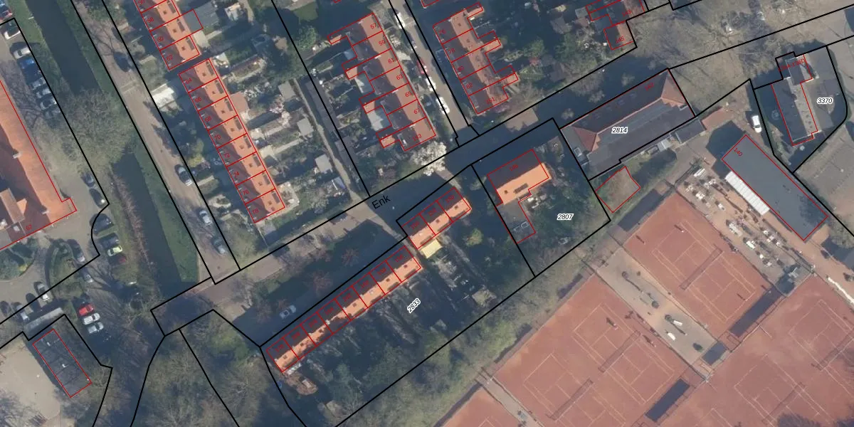 Het perceel waarop Enk 152 staat heeft een oppervlakte van 1780 m². Dit is een zeer groot perceel. De perceeloppervlakte wordt geregistreerd door het Kadaster. Gedetailleerde informatie over de maten van dit perceel kunt u vinden in het rapport Kadastrale kaart met maatvoering van Enk 152.