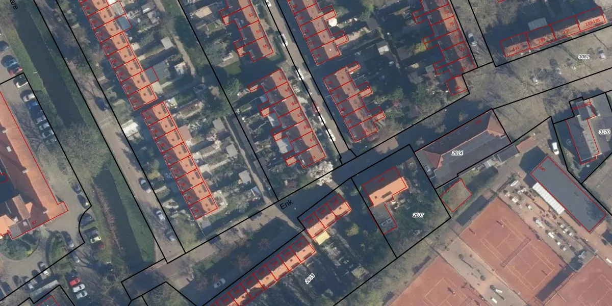 Het perceel waarop Enk 153 staat heeft een oppervlakte van 7216 m². Dit is een zeer groot perceel. De perceeloppervlakte wordt geregistreerd door het Kadaster. Gedetailleerde informatie over de maten van dit perceel kunt u vinden in het rapport Kadastrale kaart met maatvoering van Enk 153.