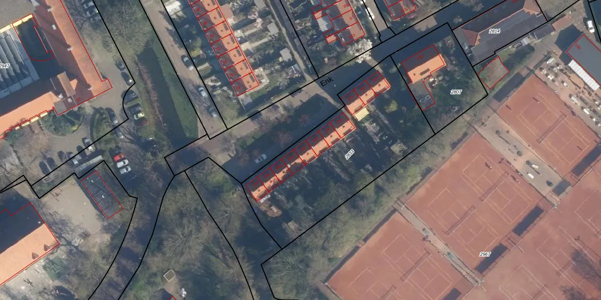 Het perceel waarop Enk 162 staat heeft een oppervlakte van 1780 m². Dit is een zeer groot perceel. De perceeloppervlakte wordt geregistreerd door het Kadaster. Gedetailleerde informatie over de maten van dit perceel kunt u vinden in het rapport Kadastrale kaart met maatvoering van Enk 162.
