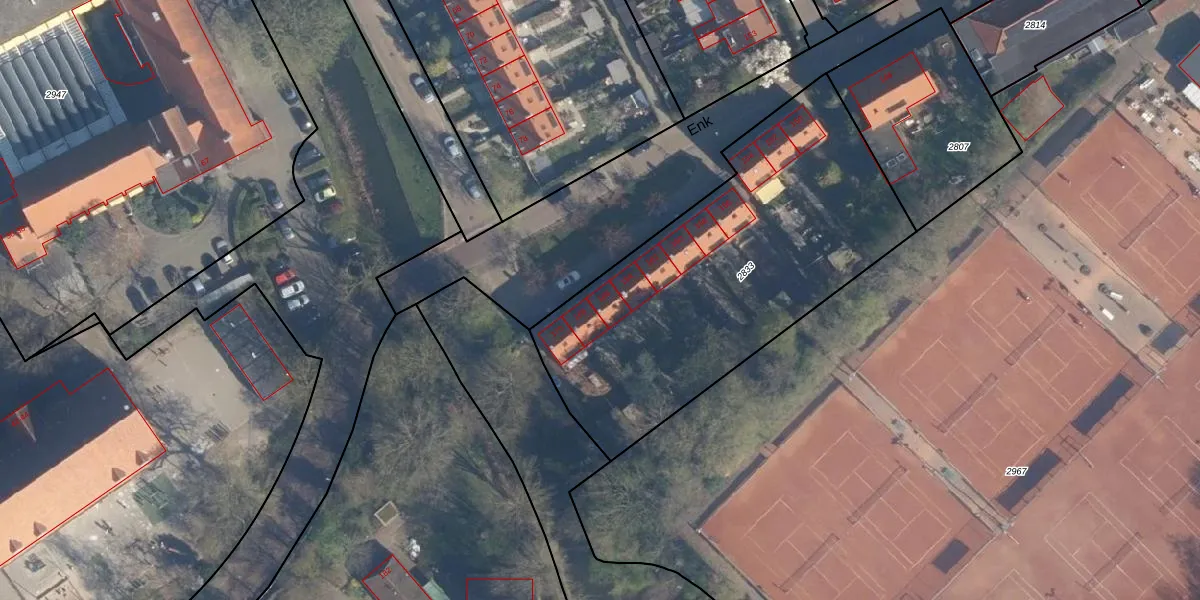 Het perceel waarop Enk 166 staat heeft een oppervlakte van 1780 m². Dit is een zeer groot perceel. De perceeloppervlakte wordt geregistreerd door het Kadaster. Gedetailleerde informatie over de maten van dit perceel kunt u vinden in het rapport Kadastrale kaart met maatvoering van Enk 166.
