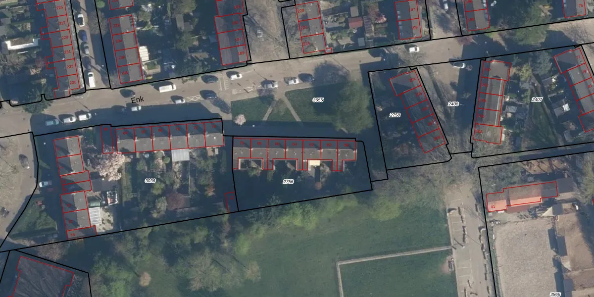 Het perceel waarop Enk 64 staat heeft een oppervlakte van 977 m². Dit is een groot perceel. De perceeloppervlakte wordt geregistreerd door het Kadaster. Gedetailleerde informatie over de maten van dit perceel kunt u vinden in het rapport Kadastrale kaart met maatvoering van Enk 64.