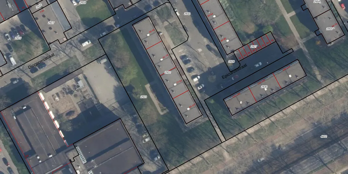 Het perceel waarop Epicurusstraat 89 staat heeft een oppervlakte van 687 m². Dit is een groot perceel. De perceeloppervlakte wordt geregistreerd door het Kadaster. Gedetailleerde informatie over de maten van dit perceel kunt u vinden in het rapport Kadastrale kaart met maatvoering van Epicurusstraat 89.