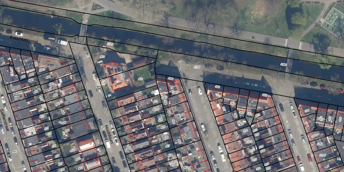 Het perceel waarop Erasmussingel 88-A staat heeft een oppervlakte van 88 m². Dit is een klein perceel. De perceeloppervlakte wordt geregistreerd door het Kadaster. Gedetailleerde informatie over de maten van dit perceel kunt u vinden in het rapport Kadastrale kaart met maatvoering van Erasmussingel 88-A.