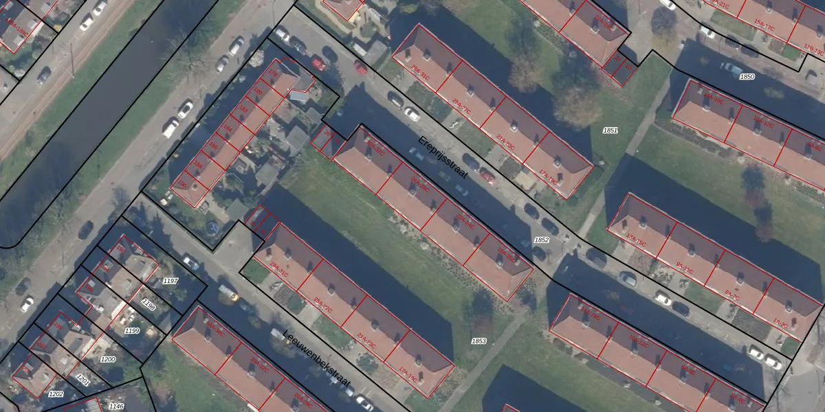 Het perceel waarop Ereprijsstraat 28-A staat heeft een oppervlakte van 7167 m². Dit is een zeer groot perceel. De perceeloppervlakte wordt geregistreerd door het Kadaster. Gedetailleerde informatie over de maten van dit perceel kunt u vinden in het rapport Kadastrale kaart met maatvoering van Ereprijsstraat 28-A.