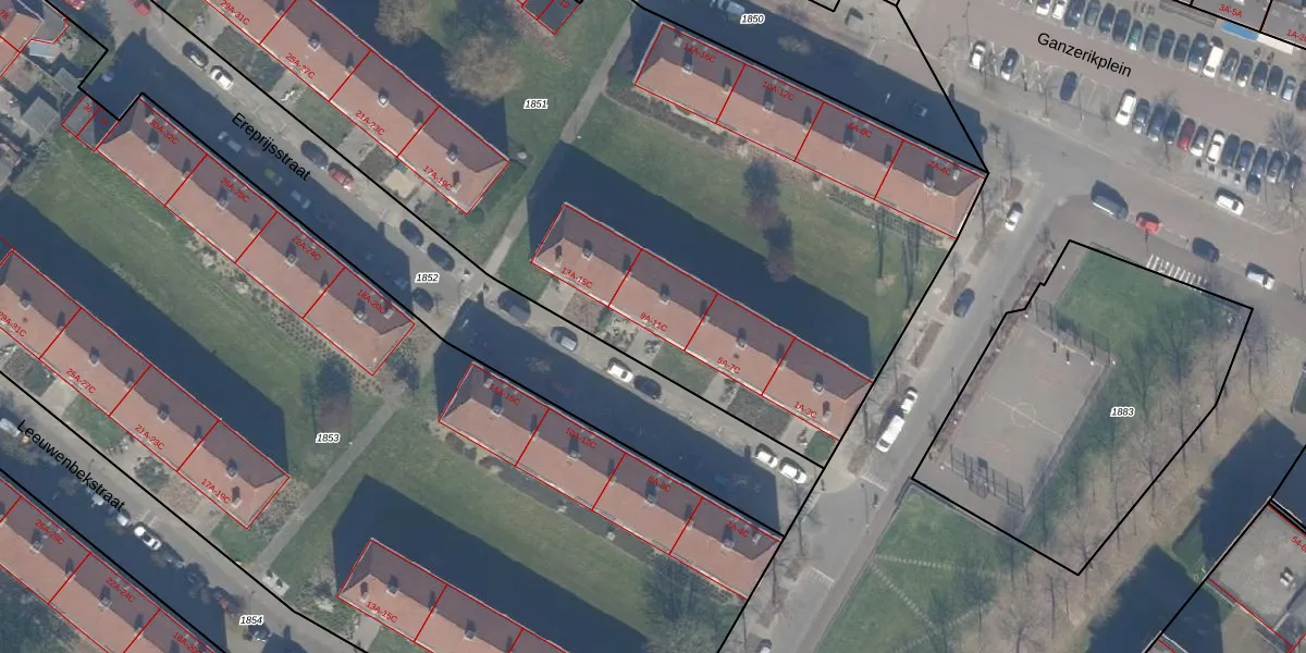 Het perceel waarop Ereprijsstraat 9-C staat heeft een oppervlakte van 6944 m². Dit is een zeer groot perceel. De perceeloppervlakte wordt geregistreerd door het Kadaster. Gedetailleerde informatie over de maten van dit perceel kunt u vinden in het rapport Kadastrale kaart met maatvoering van Ereprijsstraat 9-C.