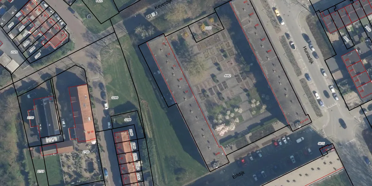 Het perceel waarop Erfdijk 67 staat heeft een oppervlakte van 4449 m². Dit is een zeer groot perceel. De perceeloppervlakte wordt geregistreerd door het Kadaster. Gedetailleerde informatie over de maten van dit perceel kunt u vinden in het rapport Kadastrale kaart met maatvoering van Erfdijk 67.