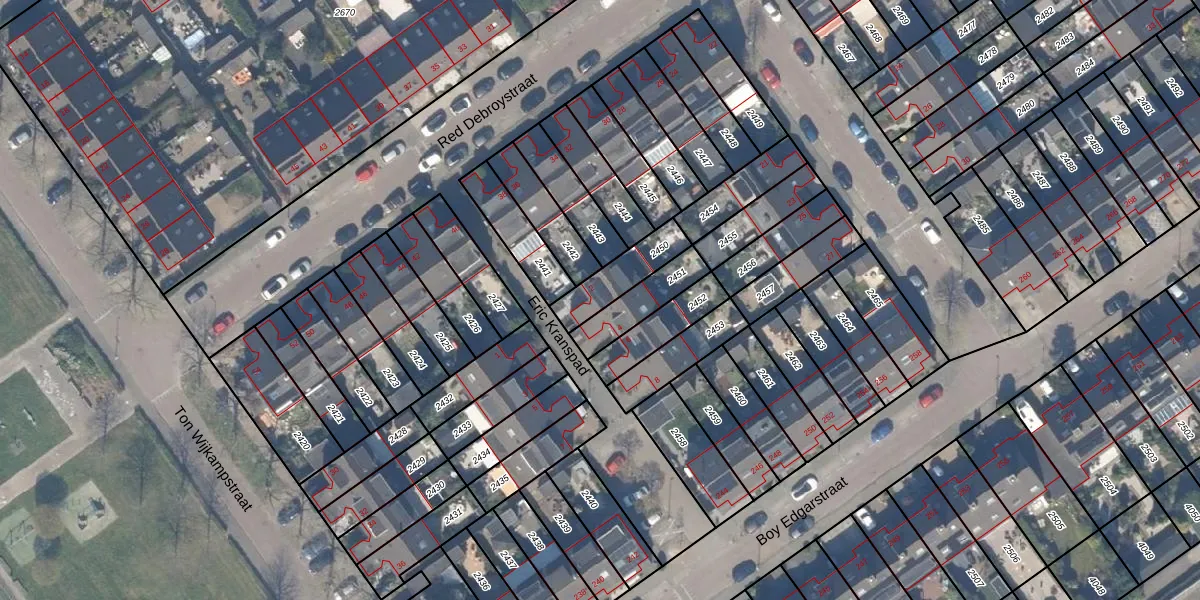 Het perceel waarop het adres ligt is RTD13-BA-2450. De afkorting 'RTD13' staat voor kadastrale gemeente Rotterdam. De gemiddelde perceelgrootte in Rotterdam is 583,29 m². Dit perceel is kleiner: de perceeloppervlakte bedraagt 142 m². Het grootste perceel in de kadastrale gemeente is 9,3 ha. Het kleinste perceel heeft een oppervlakte van 3 m². Op het perceel bevinden zich geen andere adressen. De laatste wijziging in het de Basisregistratie Kadaster (BRK) was op 27-10-2003.