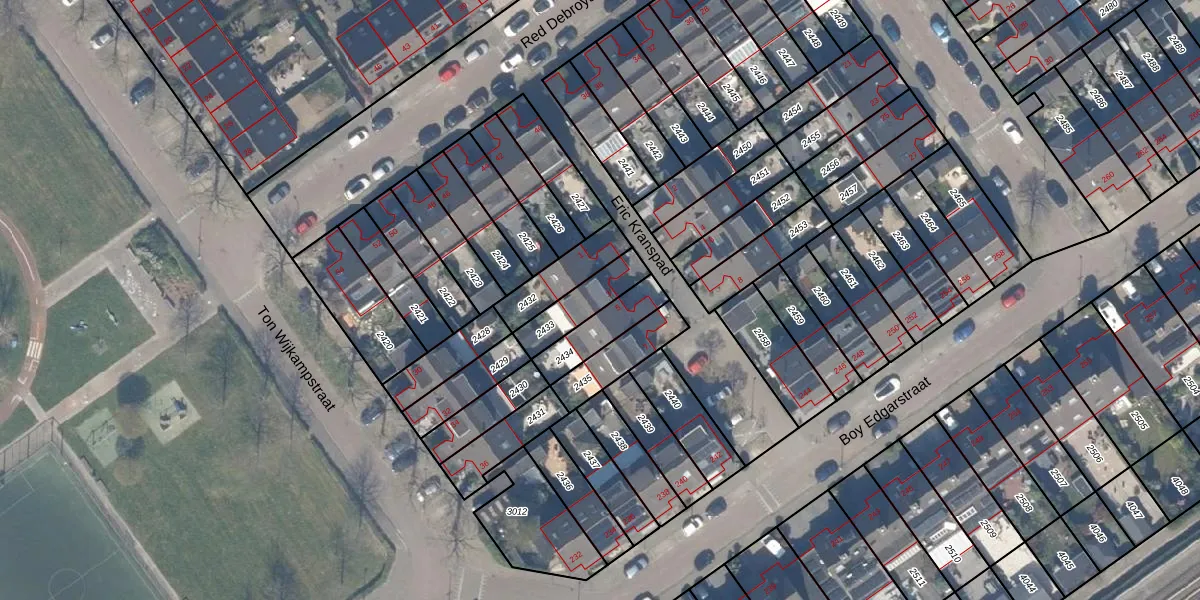 Gebruik de zoekbalk of klik op een perceel voor informatie over de adressen binnen dit perceel.