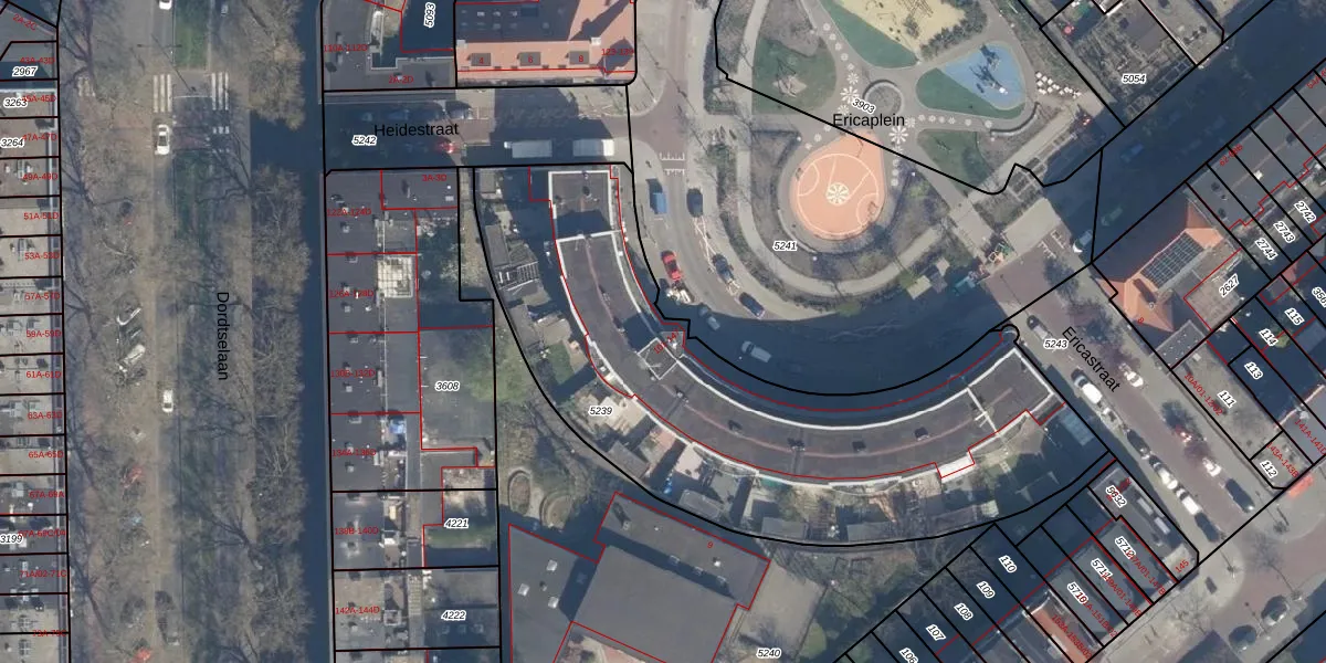 Ericaplein 106 is gelegen op kadastraal perceel CLS00G5239. Deze kadastrale aanduiding is uniek en wordt gebruikt door het Kadaster om eigendomsrechten en andere zakelijke rechten vast te leggen. Het perceel maakt onderdeel uit van de kadastrale gemeente Charlois.