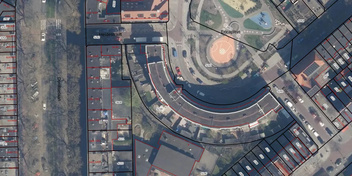 Ericaplein 126 is gelegen op kadastraal perceel CLS00G5239. Deze kadastrale aanduiding is uniek en wordt gebruikt door het Kadaster om eigendomsrechten en andere zakelijke rechten vast te leggen. Het perceel maakt onderdeel uit van de kadastrale gemeente Charlois.