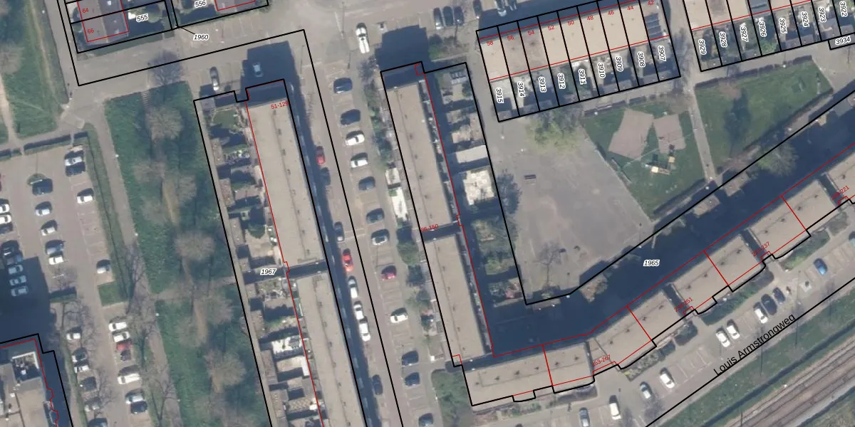 Het perceel waarop Erroll Garnerstraat 114 staat heeft een oppervlakte van 3685 m². Dit is een zeer groot perceel. De perceeloppervlakte wordt geregistreerd door het Kadaster. Gedetailleerde informatie over de maten van dit perceel kunt u vinden in het rapport Kadastrale kaart met maatvoering van Erroll Garnerstraat 114.