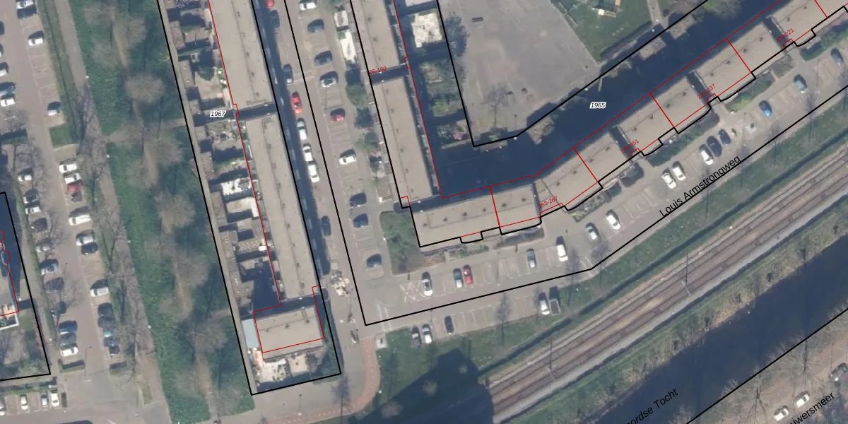 Het perceel waarop het adres ligt is RTD13-BA-1965. De afkorting 'RTD13' staat voor kadastrale gemeente Rotterdam. De gemiddelde perceeloppervlakte in de kadastrale gemeente Rotterdam is 583,29 m². Dit perceel is met zijn 3685 m² dus groter dan gemiddeld. Het kleinste perceel in de kadastrale gemeente is 3 m² groot. De grootste perceeloppervlakte is 9,3 ha. Er zijn 67 adressen aanwezig op het perceel. In de Basisregistratie Kadaster (BRK) werden de grenzen van het perceel geregistreerd op 27-10-2003.