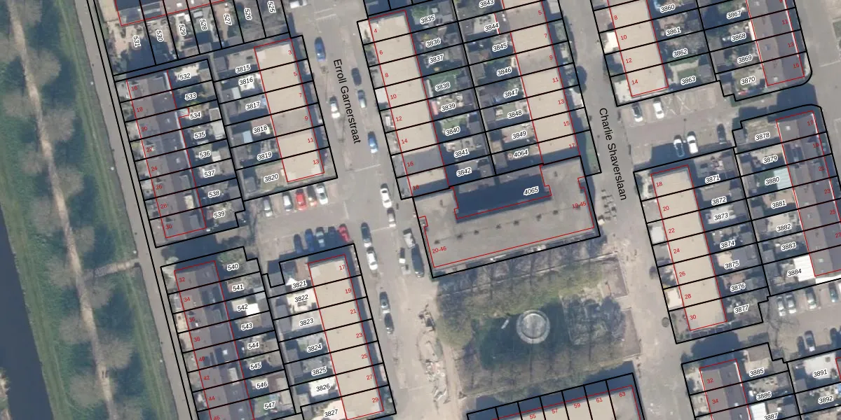 Het perceel waarop Erroll Garnerstraat 26 staat heeft een oppervlakte van 827 m². Dit is een groot perceel. De perceeloppervlakte wordt geregistreerd door het Kadaster. Gedetailleerde informatie over de maten van dit perceel kunt u vinden in het rapport Kadastrale kaart met maatvoering van Erroll Garnerstraat 26.