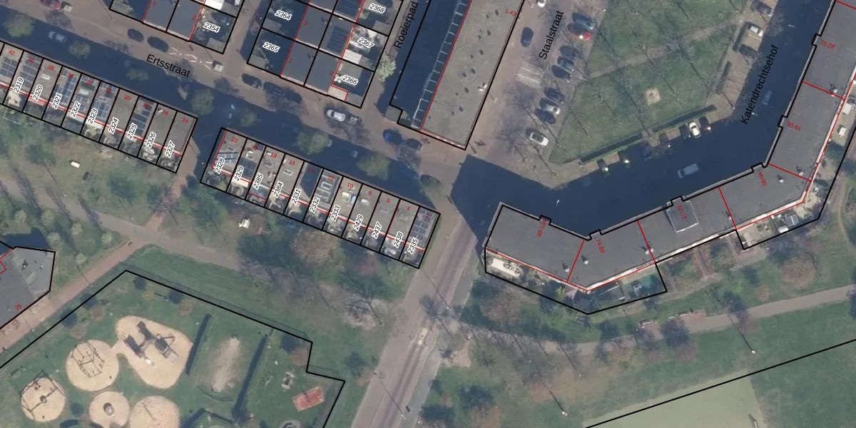 Het perceel waarop Ertsstraat 2 staat heeft een oppervlakte van 70 m². Dit is een klein perceel. De perceeloppervlakte wordt geregistreerd door het Kadaster. Gedetailleerde informatie over de maten van dit perceel kunt u vinden in het rapport Kadastrale kaart met maatvoering van Ertsstraat 2.
