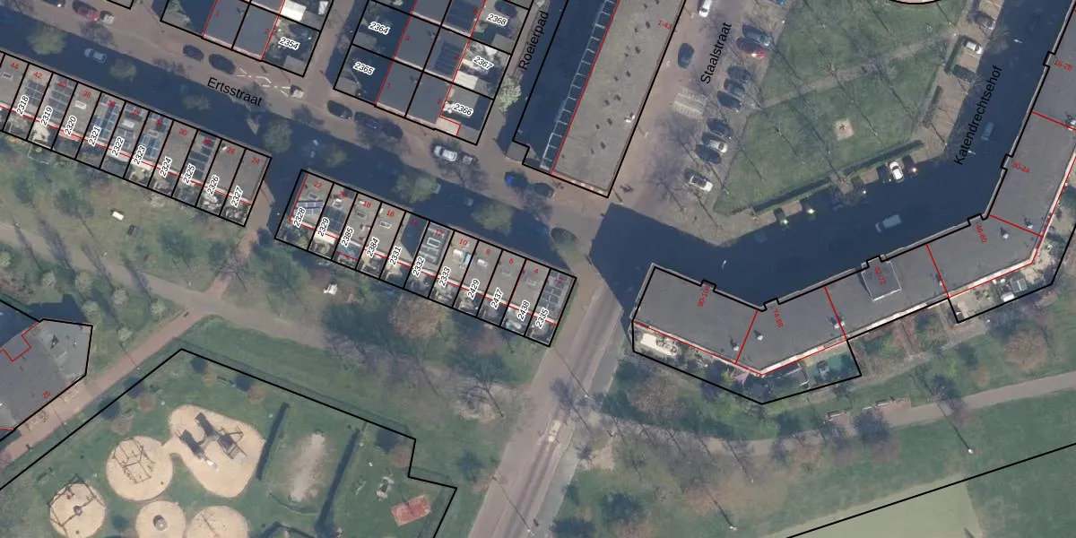 Het perceel waarop Ertsstraat 4 staat heeft een oppervlakte van 65 m². Dit is een klein perceel. De perceeloppervlakte wordt geregistreerd door het Kadaster. Gedetailleerde informatie over de maten van dit perceel kunt u vinden in het rapport Kadastrale kaart met maatvoering van Ertsstraat 4.
