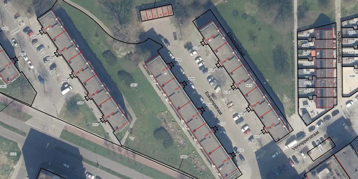 Het adres is gelegen op perceel 5867 in de sectie C en de kadastrale gemeente Overschie. De kadastrale aanduiding is aldus OVS00-C-5867. De gemiddelde perceeloppervlakte in de kadastrale gemeente Overschie is 2522,61 m². Dit perceel is met zijn 4655 m² dus groter dan gemiddeld. De grootste perceeloppervlakte in de kadastrale gemeente is 80,2 ha. De kleinste oppervlakte bedraagt 0 m². Op het perceel zijn 78 adressen aanwezig. De huidige grenzen van het perceel zijn digitaal in de Basisregistratie Kadaster (BRK) geregistreerd op 11-05-2011.