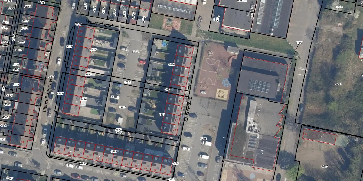 Gebruik de zoekbalk of klik op een perceel voor informatie over de adressen binnen dit perceel.
