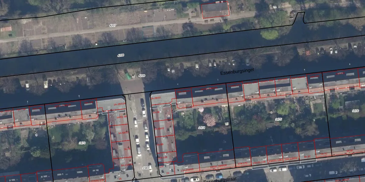 Essenburgsingel 69-B-01 is gelegen op kadastraal perceel DHV00I1474. Deze kadastrale aanduiding is uniek en wordt gebruikt door het Kadaster om eigendomsrechten en andere zakelijke rechten vast te leggen. Het perceel maakt onderdeel uit van de kadastrale gemeente Delfshaven.