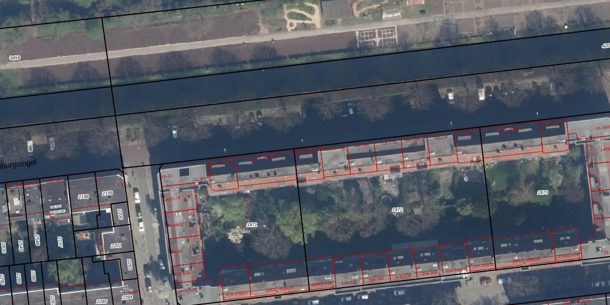 Het adres is gelegen op perceel 1472 in de sectie I en de kadastrale gemeente Delfshaven. De kadastrale aanduiding is aldus DHV00-I-1472. Het perceel is met 2895 m² relatief groot. Het gemiddelde ligt in de kadastrale gemeente Delfshaven op 628,61 m². Het grootste perceel in de kadastrale gemeente is 22,2 ha. Het kleinste perceel heeft een oppervlakte van 0 m². Op het perceel liggen in totaal 36 adressen. De huidige grenzen van het perceel zijn digitaal in de Basisregistratie Kadaster (BRK) geregistreerd op 28-07-2003.