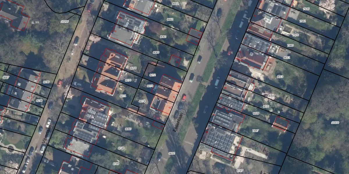 Essenlaan 39 is gelegen op kadastraal perceel KLG00D8272. Deze kadastrale aanduiding is uniek en wordt gebruikt door het Kadaster om eigendomsrechten en andere zakelijke rechten vast te leggen. Het perceel maakt onderdeel uit van de kadastrale gemeente Kralingen.