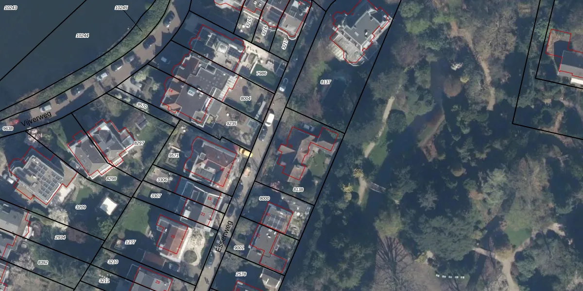 Essenweg 26 is gelegen op kadastraal perceel KLG00D8138. Deze kadastrale aanduiding is uniek en wordt gebruikt door het Kadaster om eigendomsrechten en andere zakelijke rechten vast te leggen. Het perceel maakt onderdeel uit van de kadastrale gemeente Kralingen.