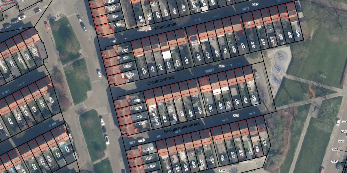 Gebruik de zoekbalk of klik op een perceel voor informatie over de adressen binnen dit perceel.