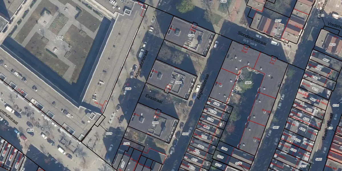 Evastraat 5 is gelegen op kadastraal perceel KLG00G5898. Deze kadastrale aanduiding is uniek en wordt gebruikt door het Kadaster om eigendomsrechten en andere zakelijke rechten vast te leggen. Het perceel maakt onderdeel uit van de kadastrale gemeente Kralingen.