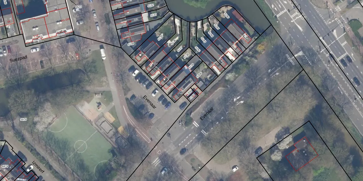 Het perceel waarop Evenaar 17 staat heeft een oppervlakte van 228 m². Dit is een middelgroot perceel. De perceeloppervlakte wordt geregistreerd door het Kadaster. Gedetailleerde informatie over de maten van dit perceel kunt u vinden in het rapport Kadastrale kaart met maatvoering van Evenaar 17.