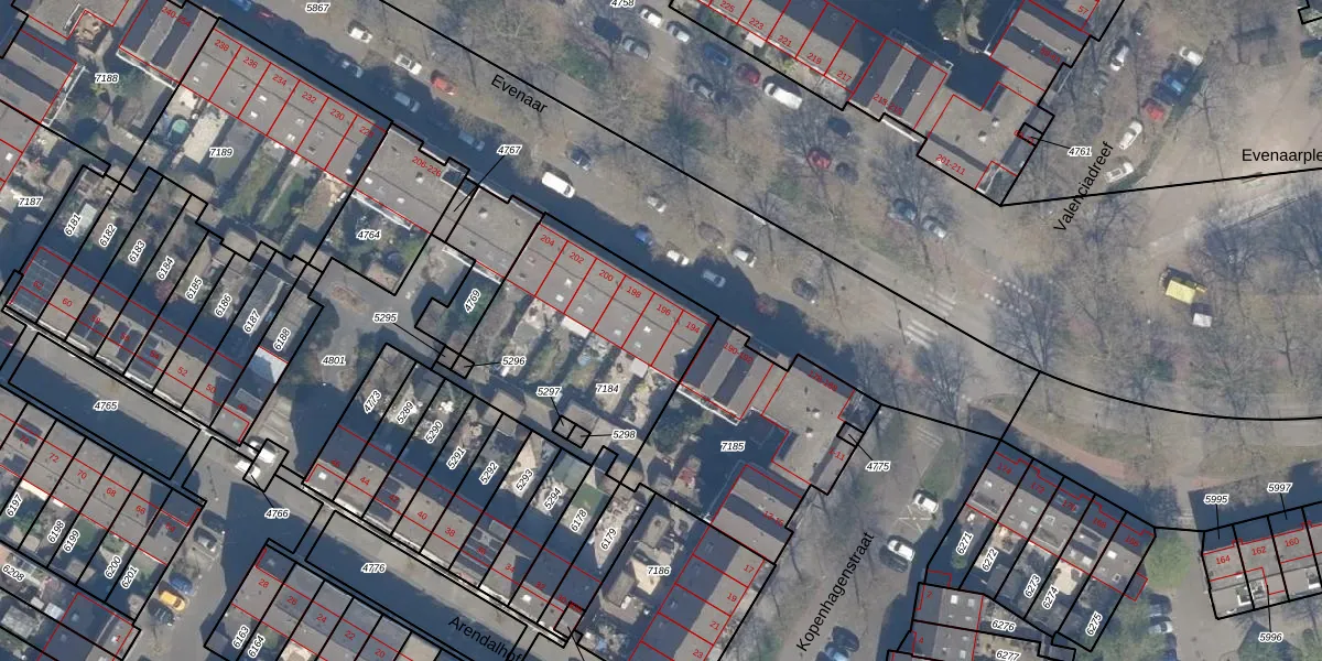 Het perceel waarop Evenaar 196 staat heeft een oppervlakte van 870 m². Dit is een groot perceel. De perceeloppervlakte wordt geregistreerd door het Kadaster. Gedetailleerde informatie over de maten van dit perceel kunt u vinden in het rapport Kadastrale kaart met maatvoering van Evenaar 196.