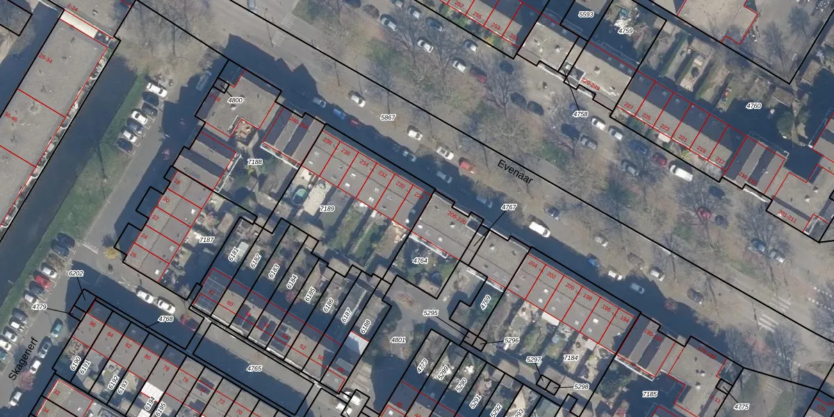 Het perceel waarop Evenaar 228 staat heeft een oppervlakte van 815 m². Dit is een groot perceel. De perceeloppervlakte wordt geregistreerd door het Kadaster. Gedetailleerde informatie over de maten van dit perceel kunt u vinden in het rapport Kadastrale kaart met maatvoering van Evenaar 228.