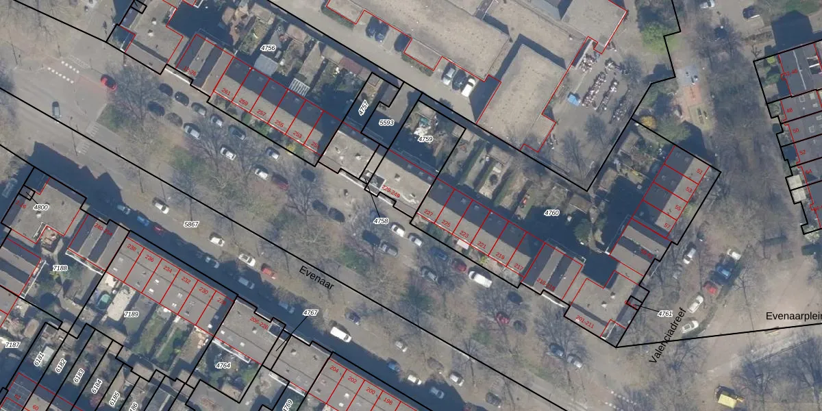 Het perceel waarop Evenaar 229 staat heeft een oppervlakte van 338 m². Dit is een groot perceel. De perceeloppervlakte wordt geregistreerd door het Kadaster. Gedetailleerde informatie over de maten van dit perceel kunt u vinden in het rapport Kadastrale kaart met maatvoering van Evenaar 229.
