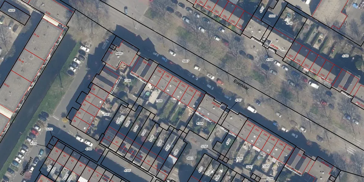 Het perceel waarop Evenaar 232 staat heeft een oppervlakte van 815 m². Dit is een groot perceel. De perceeloppervlakte wordt geregistreerd door het Kadaster. Gedetailleerde informatie over de maten van dit perceel kunt u vinden in het rapport Kadastrale kaart met maatvoering van Evenaar 232.