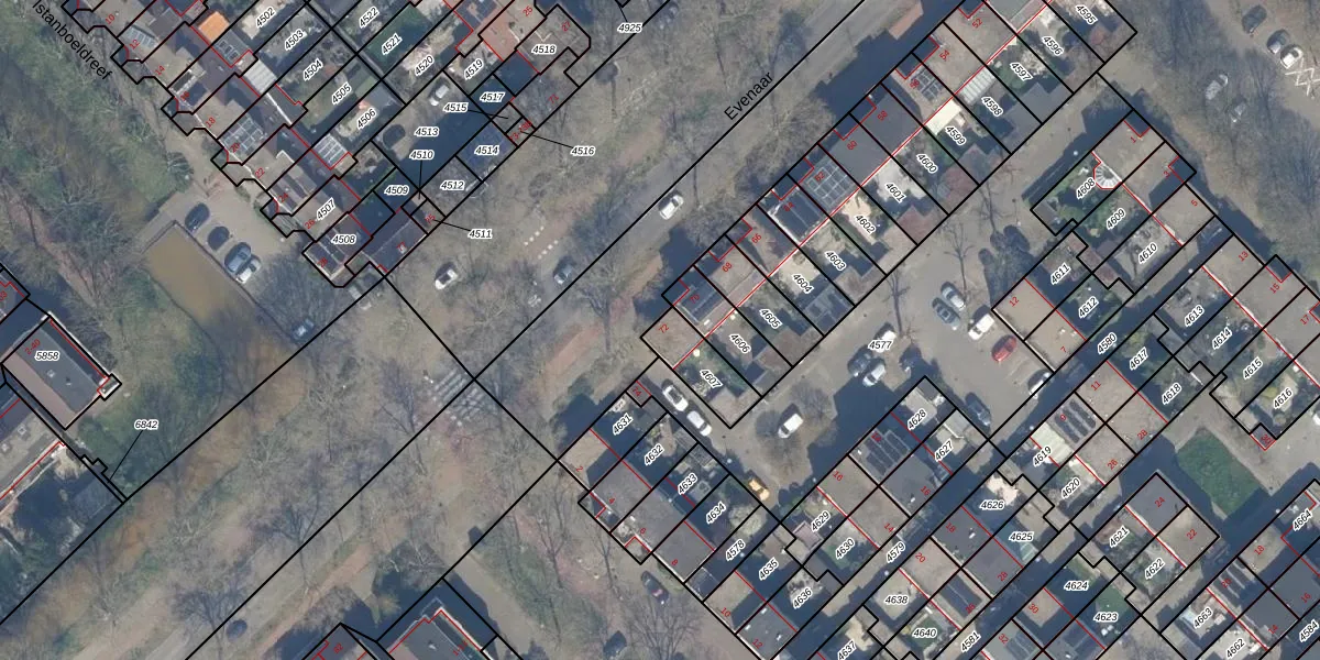 Het perceel waarop Evenaar 72 staat heeft een oppervlakte van 132 m². Dit is een middelgroot perceel. De perceeloppervlakte wordt geregistreerd door het Kadaster. Gedetailleerde informatie over de maten van dit perceel kunt u vinden in het rapport Kadastrale kaart met maatvoering van Evenaar 72.