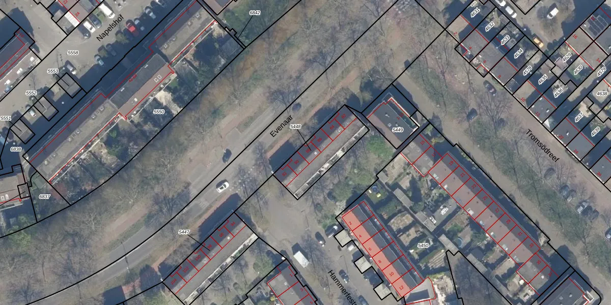 Het perceel waarop Evenaar 88 staat heeft een oppervlakte van 386 m². Dit is een groot perceel. De perceeloppervlakte wordt geregistreerd door het Kadaster. Gedetailleerde informatie over de maten van dit perceel kunt u vinden in het rapport Kadastrale kaart met maatvoering van Evenaar 88.