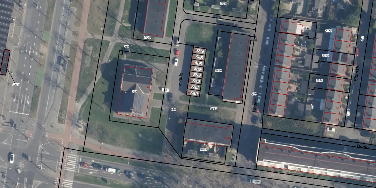 Gebruik de zoekbalk of klik op een perceel voor informatie over de adressen binnen dit perceel.