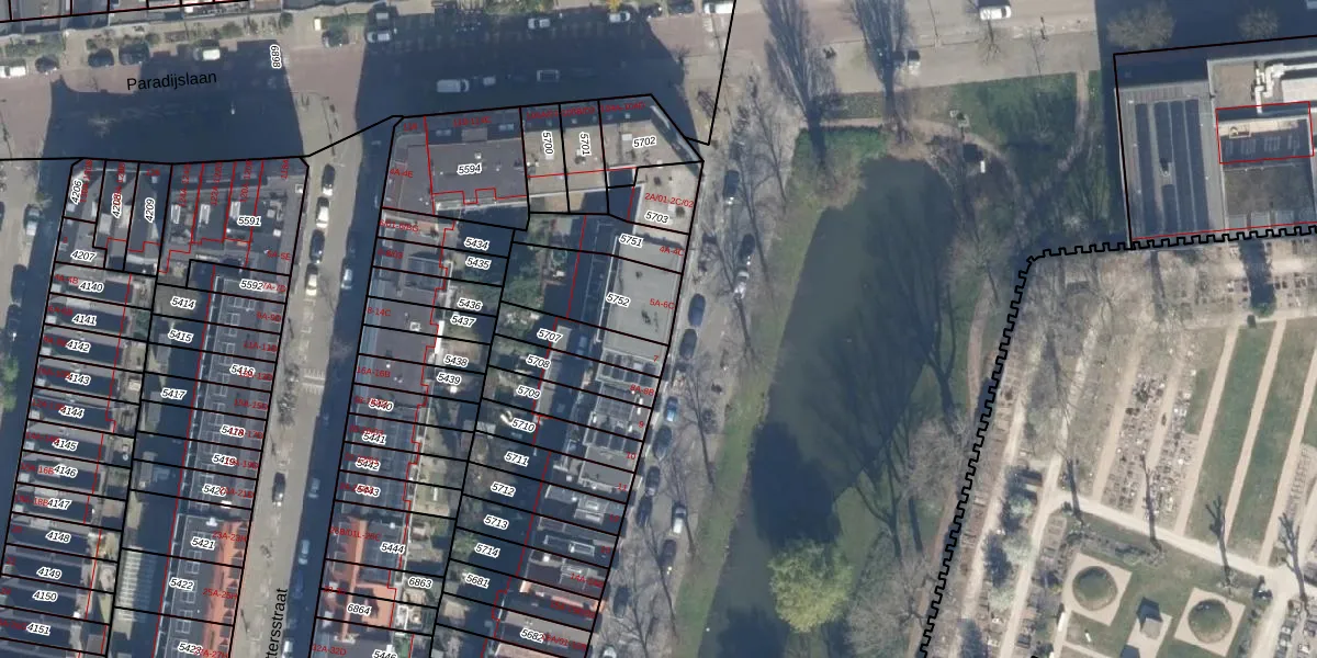 Het perceel waarop het adres ligt is RTD07-R-5752. De afkorting 'RTD07' staat voor kadastrale gemeente Rotterdam. De gemiddelde perceelgrootte in Rotterdam is 506,86 m². Dit perceel is kleiner: de perceeloppervlakte bedraagt 282 m². De grootste perceeloppervlakte in de kadastrale gemeente is 10,8 ha. De kleinste oppervlakte bedraagt 0 m². Op het perceel liggen in totaal 6 adressen. In de Basisregistratie Kadaster (BRK) werden de grenzen van het perceel geregistreerd op 06-12-2002.