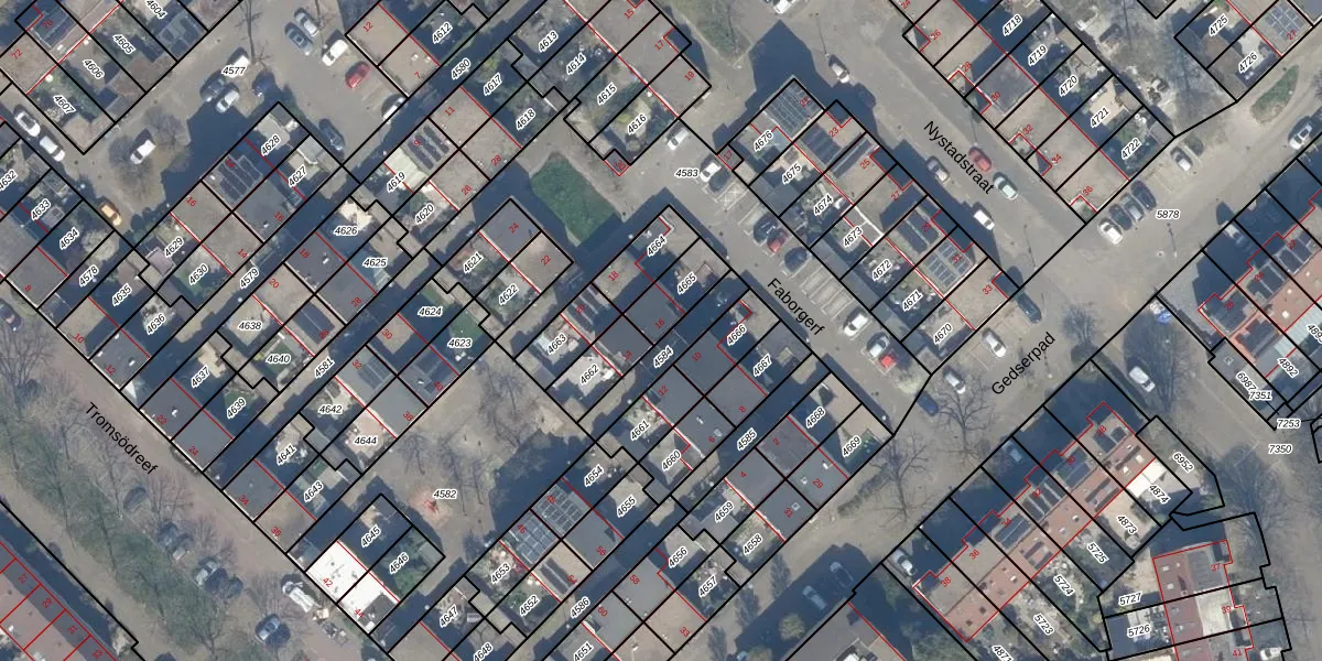 Het perceel waarop Faborgerf 16 staat heeft een oppervlakte van 112 m². Dit is een middelgroot perceel. De perceeloppervlakte wordt geregistreerd door het Kadaster. Gedetailleerde informatie over de maten van dit perceel kunt u vinden in het rapport Kadastrale kaart met maatvoering van Faborgerf 16.