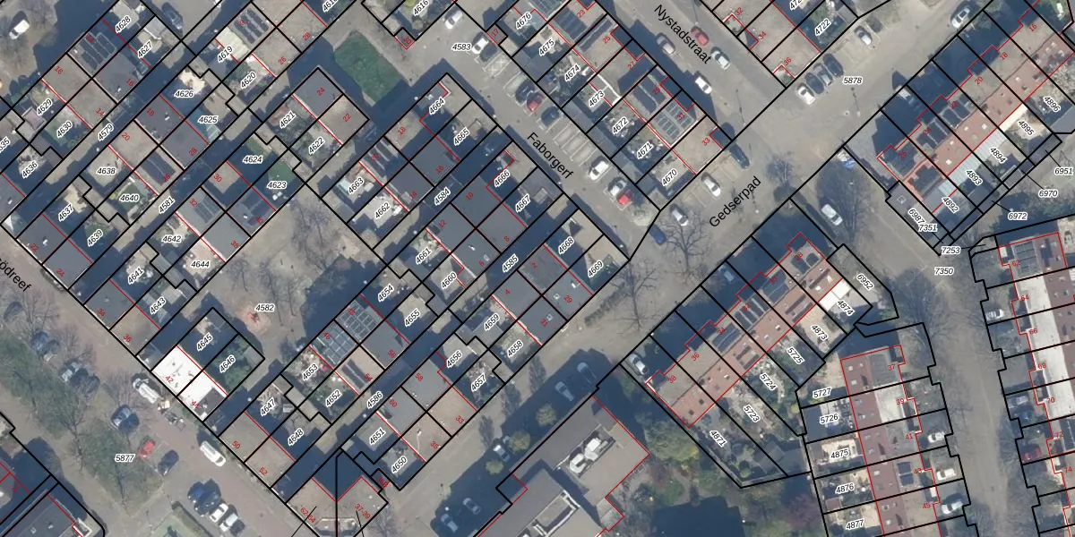 Gebruik de zoekbalk of klik op een perceel voor informatie over de adressen binnen dit perceel.