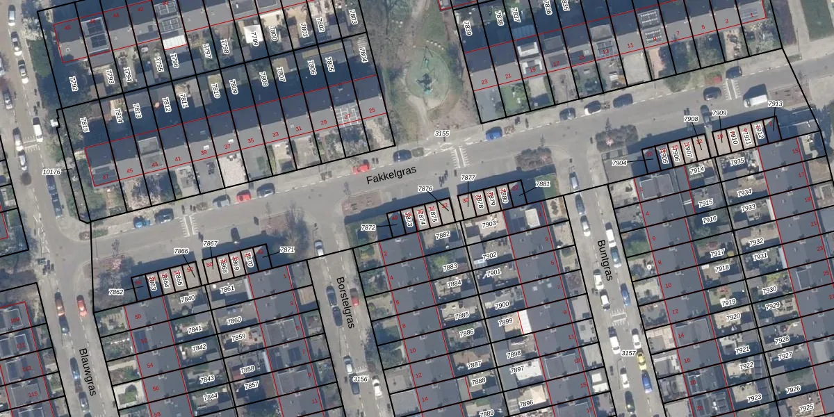 Het perceel waarop Fakkelgras 36 staat heeft een oppervlakte van 18 m². Dit is een klein perceel. De perceeloppervlakte wordt geregistreerd door het Kadaster. Gedetailleerde informatie over de maten van dit perceel kunt u vinden in het rapport Kadastrale kaart met maatvoering van Fakkelgras 36.