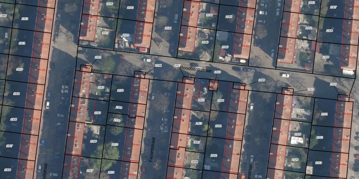 Fazantstraat 86-A is gelegen op kadastraal perceel CLS00H2412. Deze kadastrale aanduiding is uniek en wordt gebruikt door het Kadaster om eigendomsrechten en andere zakelijke rechten vast te leggen. Het perceel maakt onderdeel uit van de kadastrale gemeente Charlois.