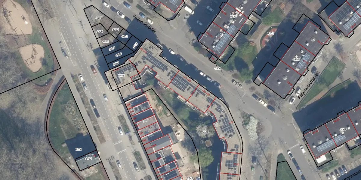 Feijenoorddijk 121 is gelegen op kadastraal perceel RTD05Q5744. Deze kadastrale aanduiding is uniek en wordt gebruikt door het Kadaster om eigendomsrechten en andere zakelijke rechten vast te leggen. Het perceel maakt onderdeel uit van de kadastrale gemeente Rotterdam.