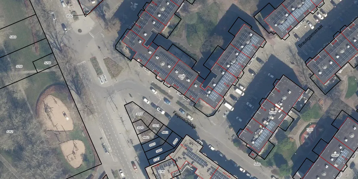 Feijenoorddijk 46 is gelegen op kadastraal perceel RTD05Q5538. Deze kadastrale aanduiding is uniek en wordt gebruikt door het Kadaster om eigendomsrechten en andere zakelijke rechten vast te leggen. Het perceel maakt onderdeel uit van de kadastrale gemeente Rotterdam.