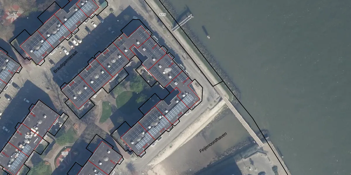 Feijenoordkade 104 is gelegen op kadastraal perceel RTD05Q5537. Deze kadastrale aanduiding is uniek en wordt gebruikt door het Kadaster om eigendomsrechten en andere zakelijke rechten vast te leggen. Het perceel maakt onderdeel uit van de kadastrale gemeente Rotterdam.