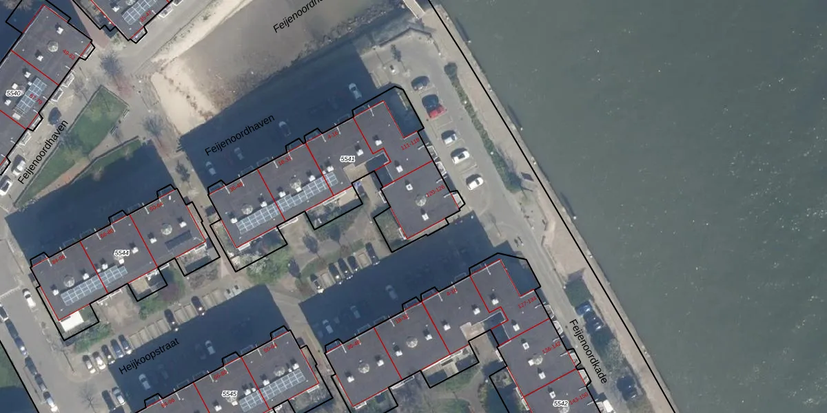Feijenoordkade 121 is gelegen op kadastraal perceel RTD05Q5541. Deze kadastrale aanduiding is uniek en wordt gebruikt door het Kadaster om eigendomsrechten en andere zakelijke rechten vast te leggen. Het perceel maakt onderdeel uit van de kadastrale gemeente Rotterdam.